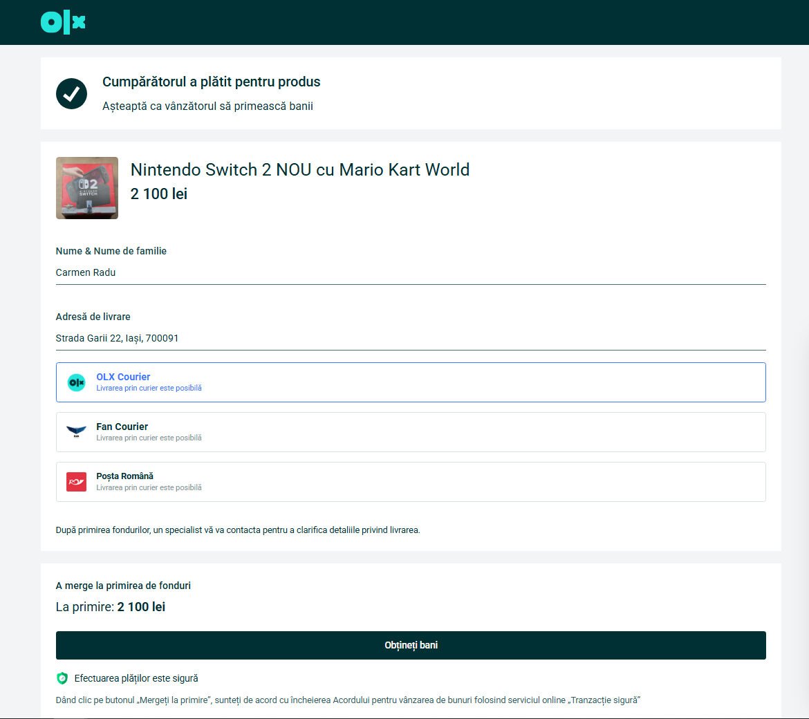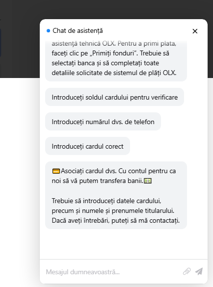 So once I created the listing, uploaded the pictures, I waited. 3 minutes later I get a norification that I received a message on the platform (OLX has a built-in chat which has some filters that detect fraudulent patterns - asking for credit card details, trying to find out personal info unrelated to the sale, etc.).